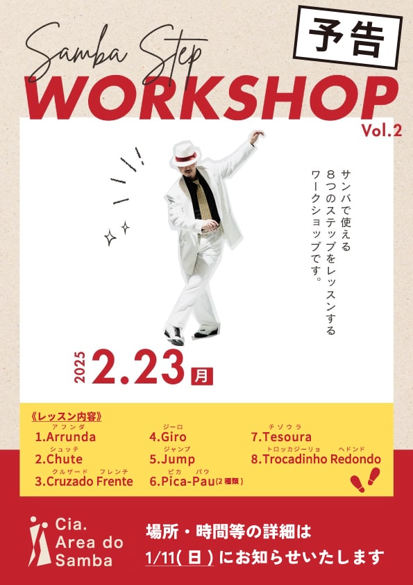 前回好評だった、サンバステップ ワークショップの第2回を開催します!