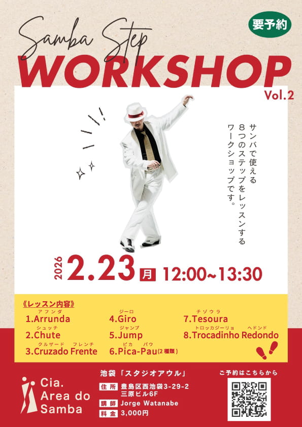 前回好評だった、サンバステップ ワークショップの第2回を開催します!